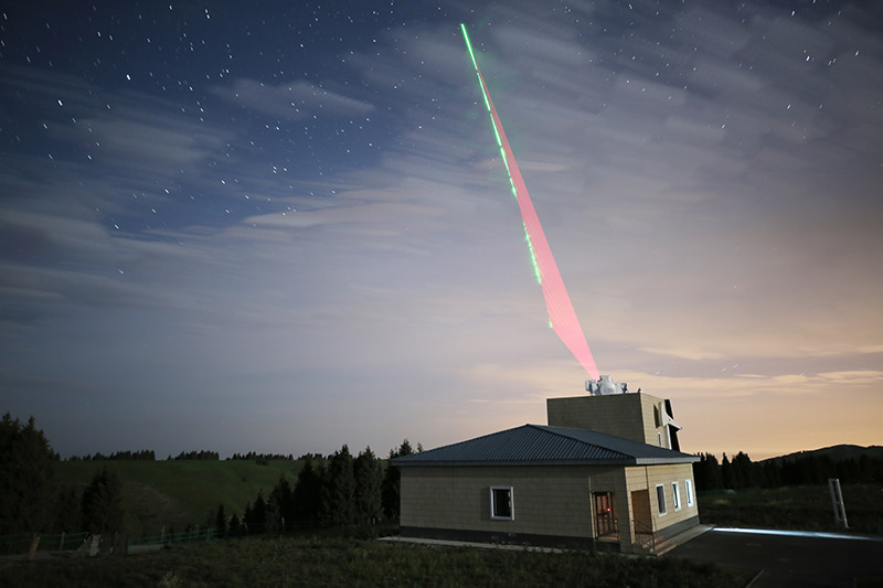 6月15日,在烏魯木齊南山觀測(cè)站,“墨子號(hào)”量子科學(xué)實(shí)驗(yàn)衛(wèi)星過境,科研人員在做實(shí)驗(yàn)(合成照片)。