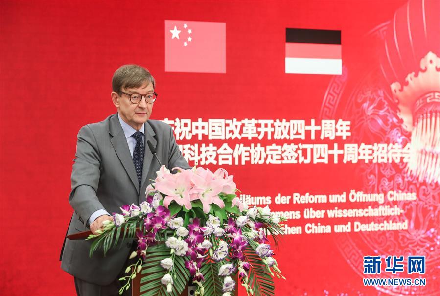 中國(guó)駐德國(guó)大使館26日晚在柏林舉辦慶祝中國(guó)改革開放四十周年暨中德政府間科技合作協(xié)定簽訂四十周年招待會(huì)。中德科技界人士匯聚一堂,共話兩國(guó)科技創(chuàng)新合作。