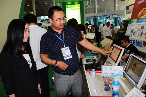 6月18日下午,記者在2015中國青海綠色發(fā)展投資貿(mào)易洽談會主會場西寧城南國際會展見到夏晗時,他正在為客戶講解自己的團(tuán)隊和有關(guān)互聯(lián)網(wǎng)知識。