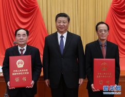 8日上午,國(guó)家科學(xué)技術(shù)獎(jiǎng)勵(lì)大會(huì)在京舉行。 習(xí)近平出席大會(huì),并向獲得2017年度國(guó)家高科學(xué)技術(shù)獎(jiǎng)的南京理工大學(xué)王澤山院士和中國(guó)疾病預(yù)防控制中心病毒病預(yù)防控制所侯云德院士頒發(fā)獎(jiǎng)勵(lì)