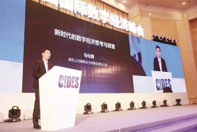 騰訊公司董事局主席兼首席執(zhí)行官馬化騰作主題演講。記者閆思宇攝 □記者吳新光 11月23日上午,騰訊公司董事局主席兼首席執(zhí)行官馬化騰現(xiàn)身石家莊太行國賓館。當天,騰訊公司與雄安新區(qū)