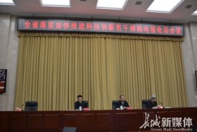 全省落實加快推進科技創(chuàng)新若干措施電視電話會議現(xiàn)場。記者吳新光攝 長城新媒體10月22日訊(記者吳新光)日前,河北省出臺《加快推進科技創(chuàng)新的若干措施》。省科技廳廳長馬宇駿對《加快推