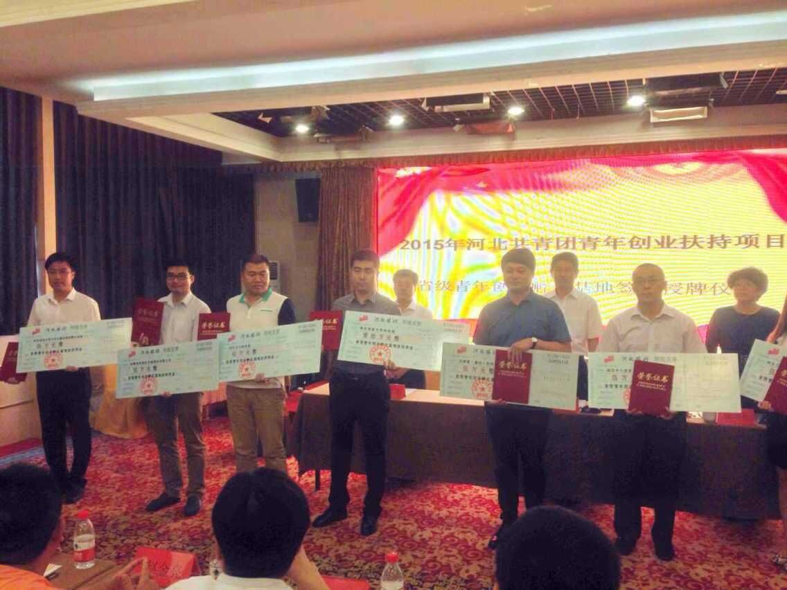 2015年6月17日邯鄲高科園區(qū)李青攜團(tuán)隊(duì)參加了“2015年河北共青團(tuán)青年創(chuàng)業(yè)扶持項(xiàng)目——省級青年創(chuàng)業(yè)孵化基地簽約授牌儀式”活動(dòng),邯鄲高科園區(qū)與共青團(tuán)省委正式簽訂合作孵化框架協(xié)議,成為首批省級青年創(chuàng)業(yè)孵化基地。