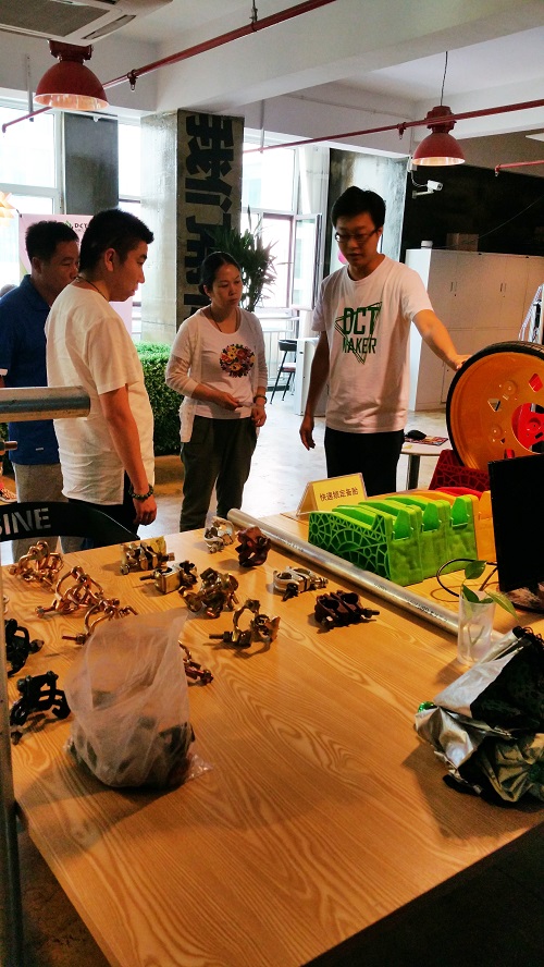 一行人首先來到DCT創(chuàng)客空間一層參觀,王江濤向創(chuàng)客樂園人員介紹了DCT創(chuàng)客空間的服務(wù)理念、入駐流程等。