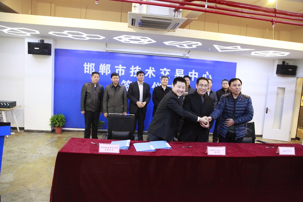 2016年12月23日下午,邯鄲創(chuàng)業(yè)投資集團(tuán)有限公司與河北工程大學(xué)、中船重工第七一八研究所在DCT創(chuàng)客空間會議室就邯鄲市技術(shù)交易中心合作事宜正式簽訂了戰(zhàn)略合作協(xié)議。邯鄲市政府黨組成員王建明、市政府副秘書長丁向平、邯鄲經(jīng)濟(jì)技術(shù)開發(fā)區(qū)管委會副主任楊獻(xiàn)仲、投資促進(jìn)局劉鎰南、邯鄲市科技局局長申陸峰、副局長朱春雷、中船重工第七一八所研究院所長李俊華、副所長王少波、河北工程大學(xué)副校長郭鴻湧出席了簽約儀式。