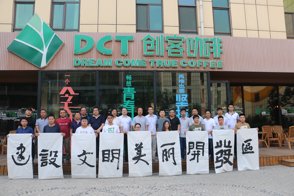 隨后是書法家們的主場,一行人在DCT創(chuàng)客空間開展了“邯鄲市迎接十九大書法作品評審”,并用通俗易懂的語言向我們傳授基本的書法知識,使我們都能領(lǐng)略國粹的魅力。后,書法家們即興潑墨,題寫“建設(shè)文明美麗開發(fā)區(qū)”,,助力我區(qū)創(chuàng)城工作。
